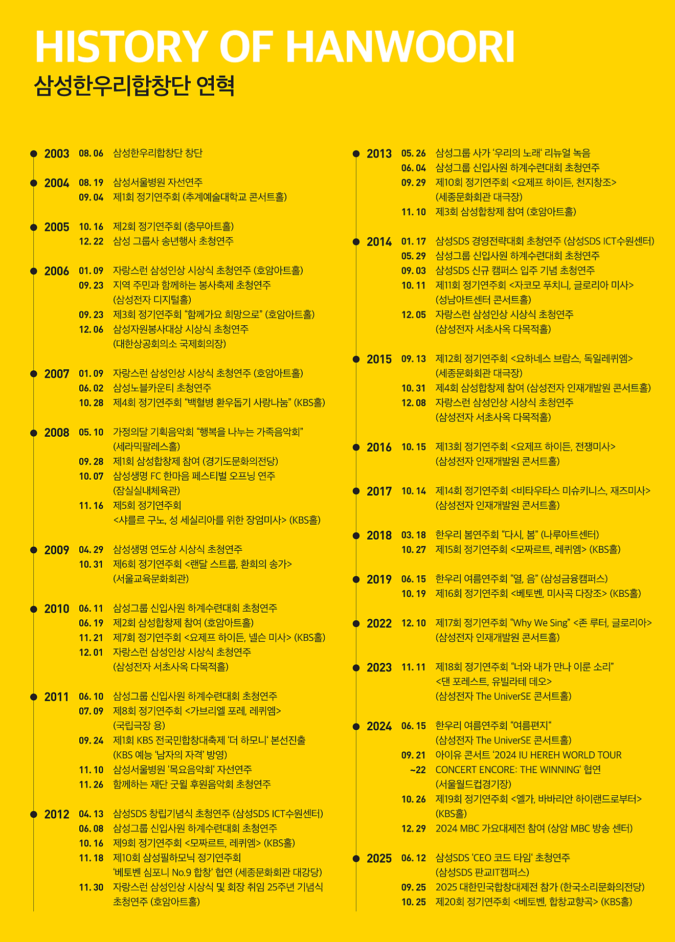 삼성한우리합창단은 변치 않는 마음으로 음악과 함께 하며, 좋은 영향력을 전파하기 위해 항상 즐거움을 잃지 않을 것입니다.