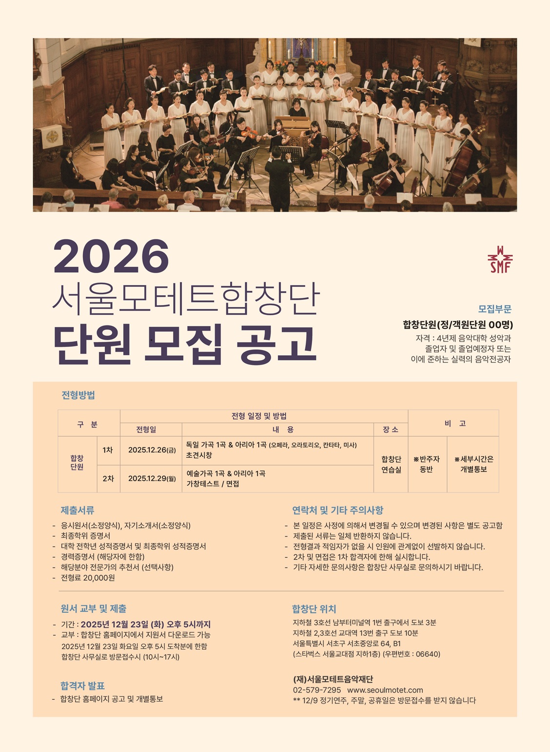 < 2026 서울모테트합창단 단원 모집 공고 >
