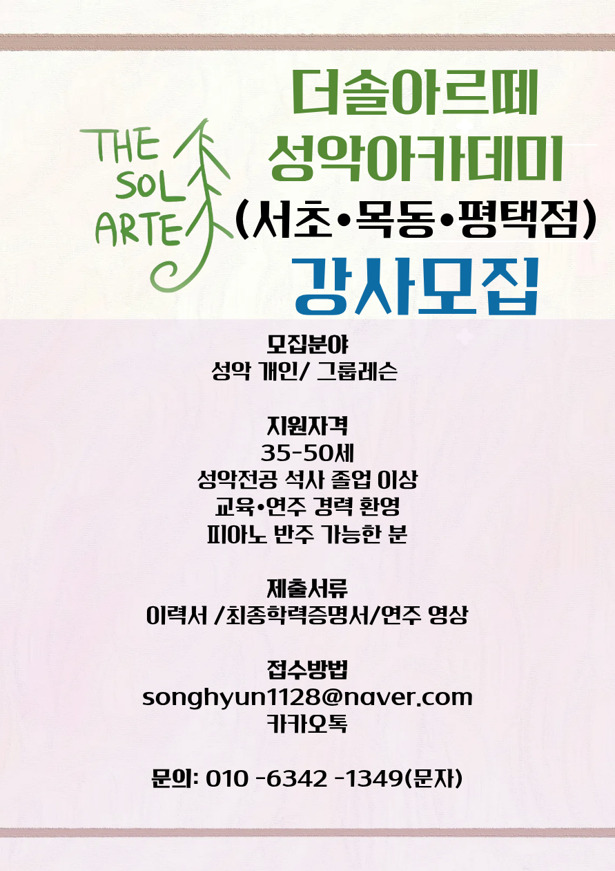 성악아카데미 (주)더 솔 아르떼 평택점 성악 전문강사 채용 공고