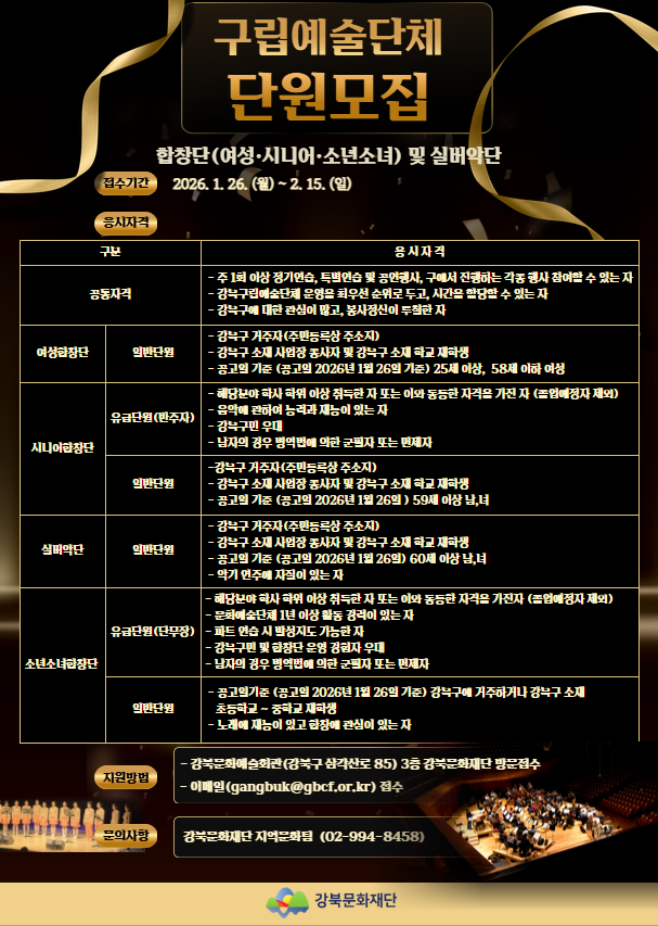 강북구립 문화예술단체 상반기 단원모집