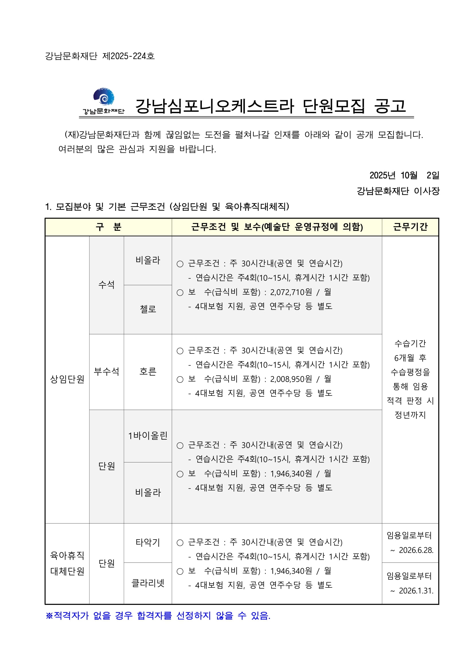 강남심포니오케스트라 단원 모집공고