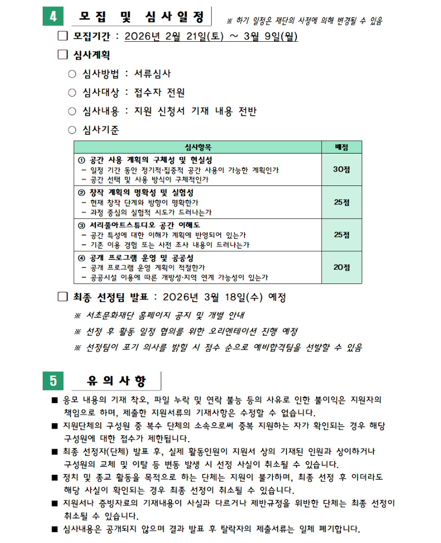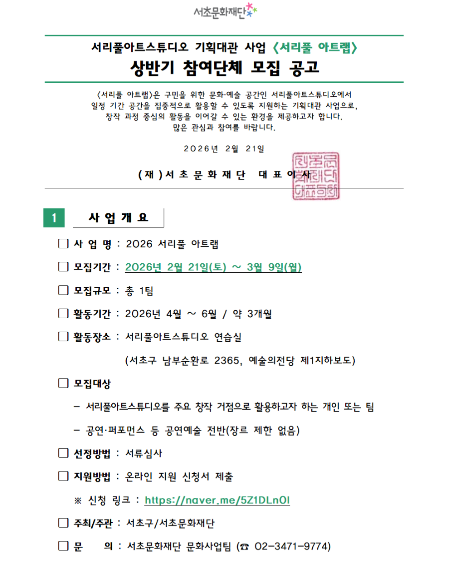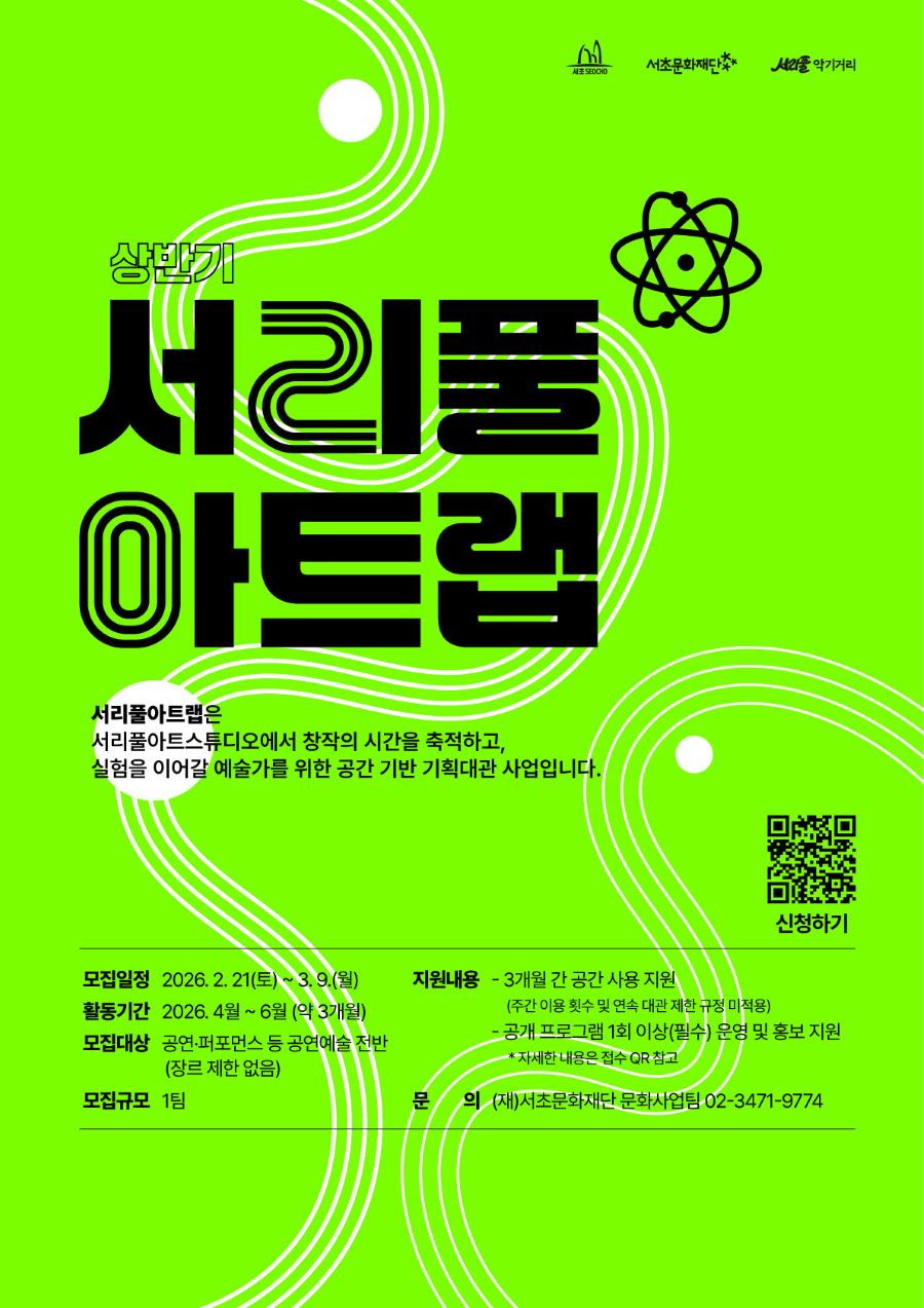 2026 서리풀 아트랩 상반기 참여팀 모집 (서리풀아트스튜디오 기획대관 사업)