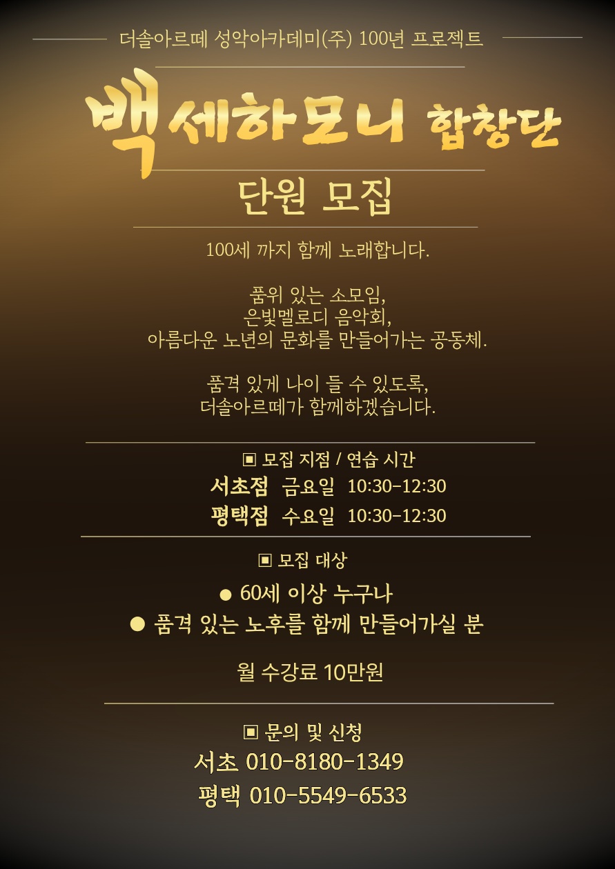 [경기][평택] 더솔아르떼 시니어 합창단 단원 모집